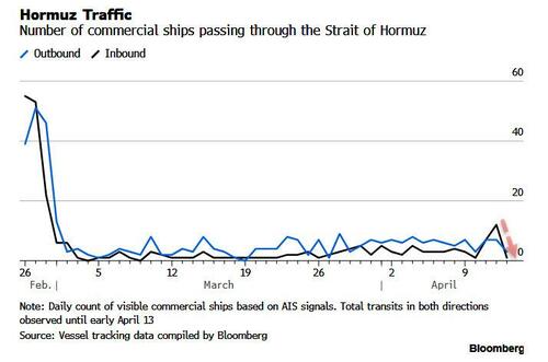 Oil Tanker Going To China Forced To Reverse Course Before Crossing Hormuz Under US Blockade One day after a burst of traffic through the Strait of Hormuz, when according to Bloomberg 19 ships crossed in either direction while Trump said that as many as 34 ships crossed the waterway on Sunday, shipping through Hormuz slumped back down again Monday, reversing Sunday’s jump, as caution mounted ahead of a US naval blockade. After 19 […]